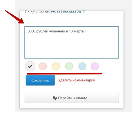 В Таблице отчетности появилась возможность добавлять пометки к платежам и выделять их разными цветами. Это может пригодиться, если оплата проходит не за один раз или если с предприятием работают сразу несколько человек.
