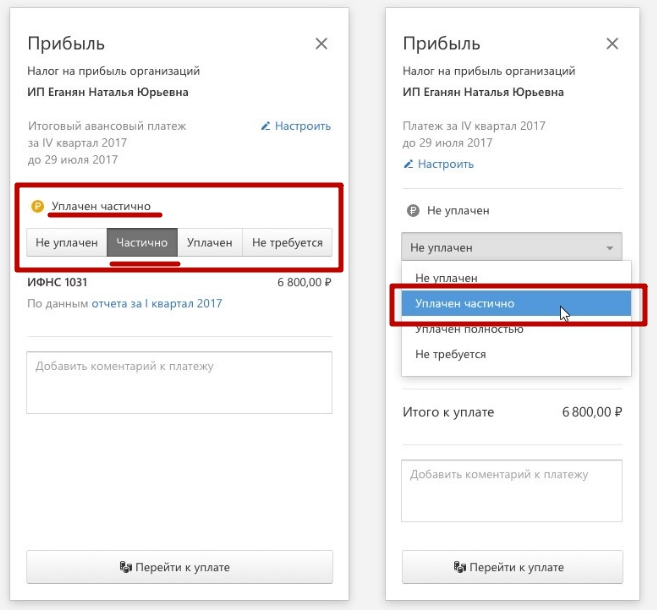 При клике на любую ячейку платежа в Таблице отчетности появляется информационное окно с названием, сроком и периодом платежа. Статус платежа при этом выбирается самостоятельно. Теперь список статусов пополнился новым — «Уплачен частично».